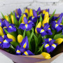Букет из синих ирисов и желтых тюльпанов в Воскресенске