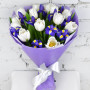 Букет из синих ирисов и белых тюльпанов в Воскресенске