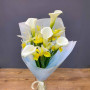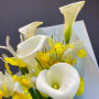 Букет из желтых ирисов и беллых калл в Воскресенске