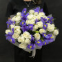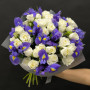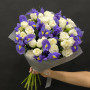 Букет из синих ириcов и белой кустовой розы в Воскресенске