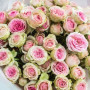 На фото свадебный монобукет из кустовой розы. В составе: кустовая роза 11 шт, крафт-бумага 1 шт, атласная лента 1 шт, . Все цветы свежие и ароматные, букет красиво оформлен и отлично подходит для подарка. Доступна доставка цветов или самовывоз.