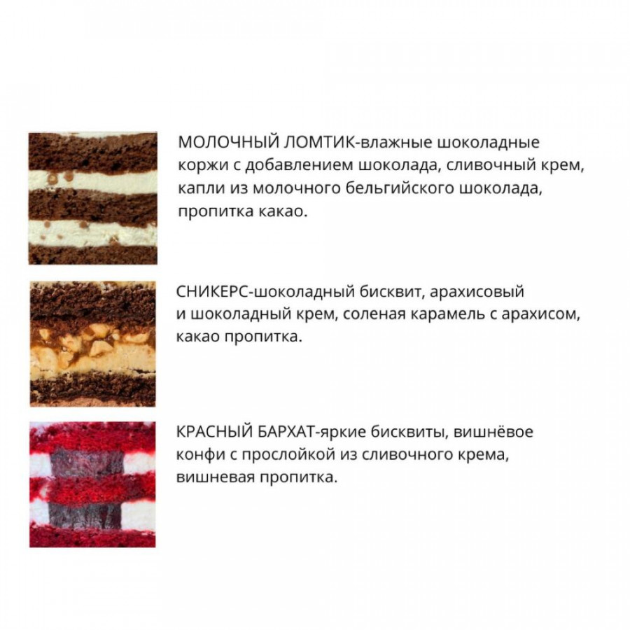 Сливочное масло 82,2% , мука, яйца, сливки 33% , белый шоколад, натуральный краситель, сахар, экстракт ванили Возможны следы сои и Орехов